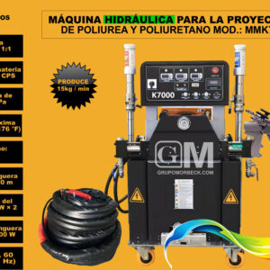 La Hidráulica para la proyección de poliureas y poliuretano es un equipo diseñado para aplicar de manera eficiente y precisa estos materiales en distintas superficies. Estos productos se utilizan comúnmente en la industria de la construcción, ya que ofrecen excelentes propiedades de protección y aislamiento térmico. La máquina funciona por medio de la combinación de dos componentes: el poliol y el isocianato, que al mezclarse generan una reacción química y forman un recubrimiento continuo y SÚPER RESISTENTE. Además, la máquina cuenta con diferentes ajustes para controlar la velocidad de la aplicación y la densidad del material, lo que permite un acabado uniforme y de alta calidad.