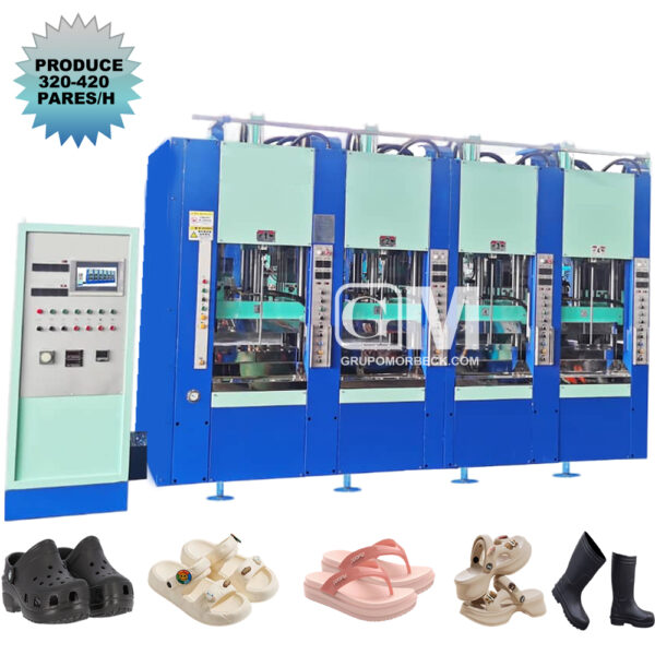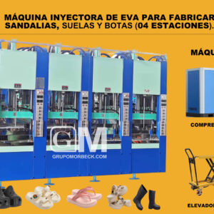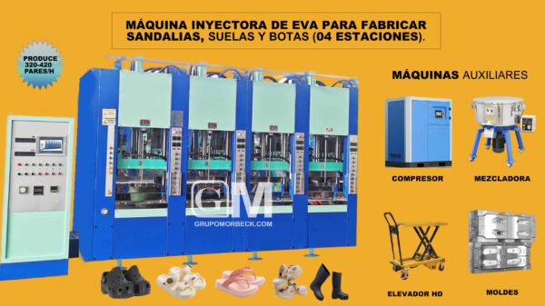 Máquina de Inyección de 04 Estaciones – Para producir zapatillas / zapatos / botas / suelas de EVA.