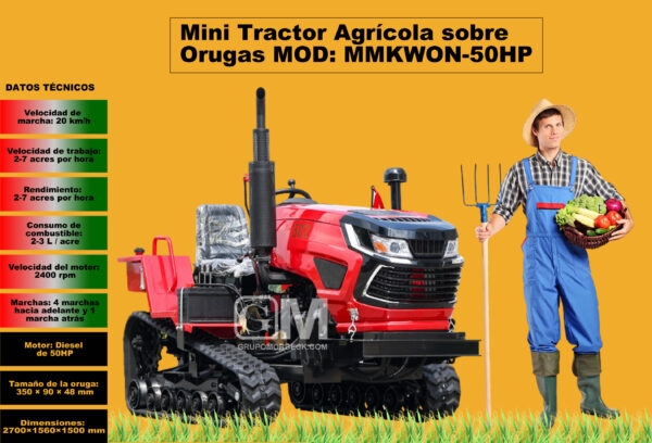 Este tractor sobre orugas con 50 CV posee una gran aplicabilidad: adecuado para todo tipo de montañas, colinas, llanuras, campos secos, invernaderos, huertos y zonas estrechas. Adecuado para todo tipo de suelo: suelo duro, arcilla, suelo negro, montaña, suelo blando, puede funcionar en huertos, pequeñas parcelas de tierra, invernaderos, jardines, colinas, montañas y otras topografías y suelos diferentes a los que no pueden acceder máquinas grandes.
